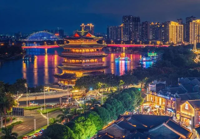 青秀山、邕江边,是我最喜欢的散步地。青秀山不高,台阶顺脚,龙象塔上能看见邕江转弯,城景像一张打开的折扇。山里的古庙,香火缭绕,百年古榕张牙舞爪。晚饭后沿江散步,桥拱在灯下像弯月,偶尔有壮族阿婆唱起歌圩,声音干脆利落。我问她:“阿婆,这歌咋唱的?”她笑着回:“咳,随心唱咯,唱给江听,唱给人听。”