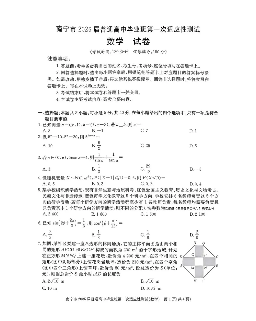 今日分享:【南宁市2026届高三第一次适应性测/柳州市2026届高三第二次模拟】如果获得您的关注和喜爱,也请帮忙分享给更多有需要的人,您的每一次转发、点赞,都是我努力寻找、整理资源的动力!