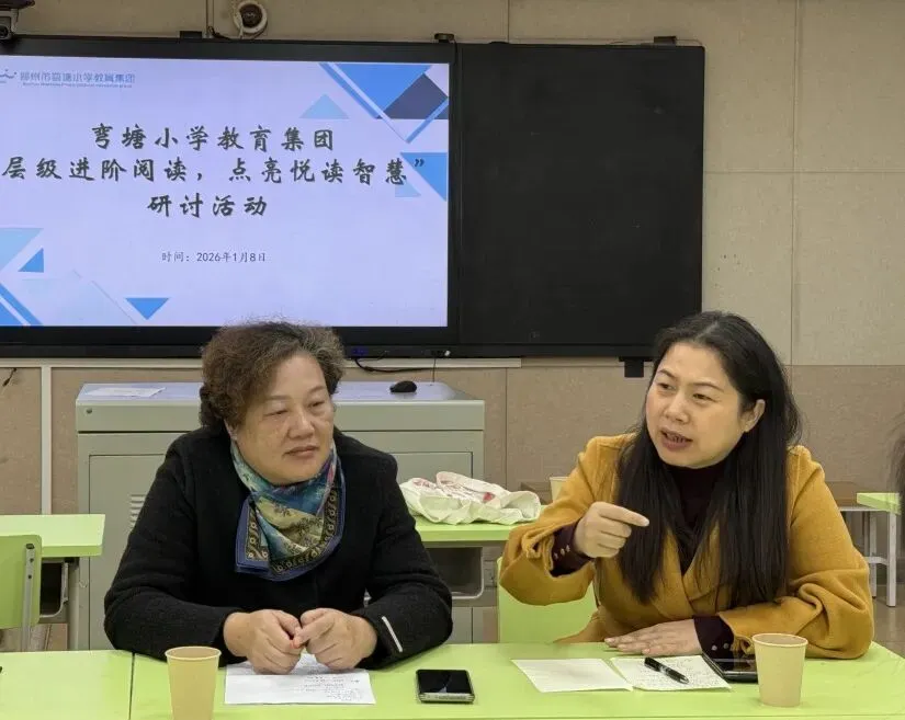 为深化整本书层级进阶阅读教学实践,深入落实新课标核心素养要求,探索儿童文学作品的课堂转化路径,2026年1月8日上午,柳州市弯塘小学教育集团本部校区迎来广西教育出版社教研院执行院长潘建敏及教研员卢耀珍、兰虹、谢卢波组成的专家团队进校开展“层级进阶”整本书阅读调研指导,柳州市城中区教研员黄宪芳老师、吕柳萍老师受邀莅临,柳州市弯塘小学教育集团“文心润育”潘莉莉语文学科工作坊教师全程参与研讨。