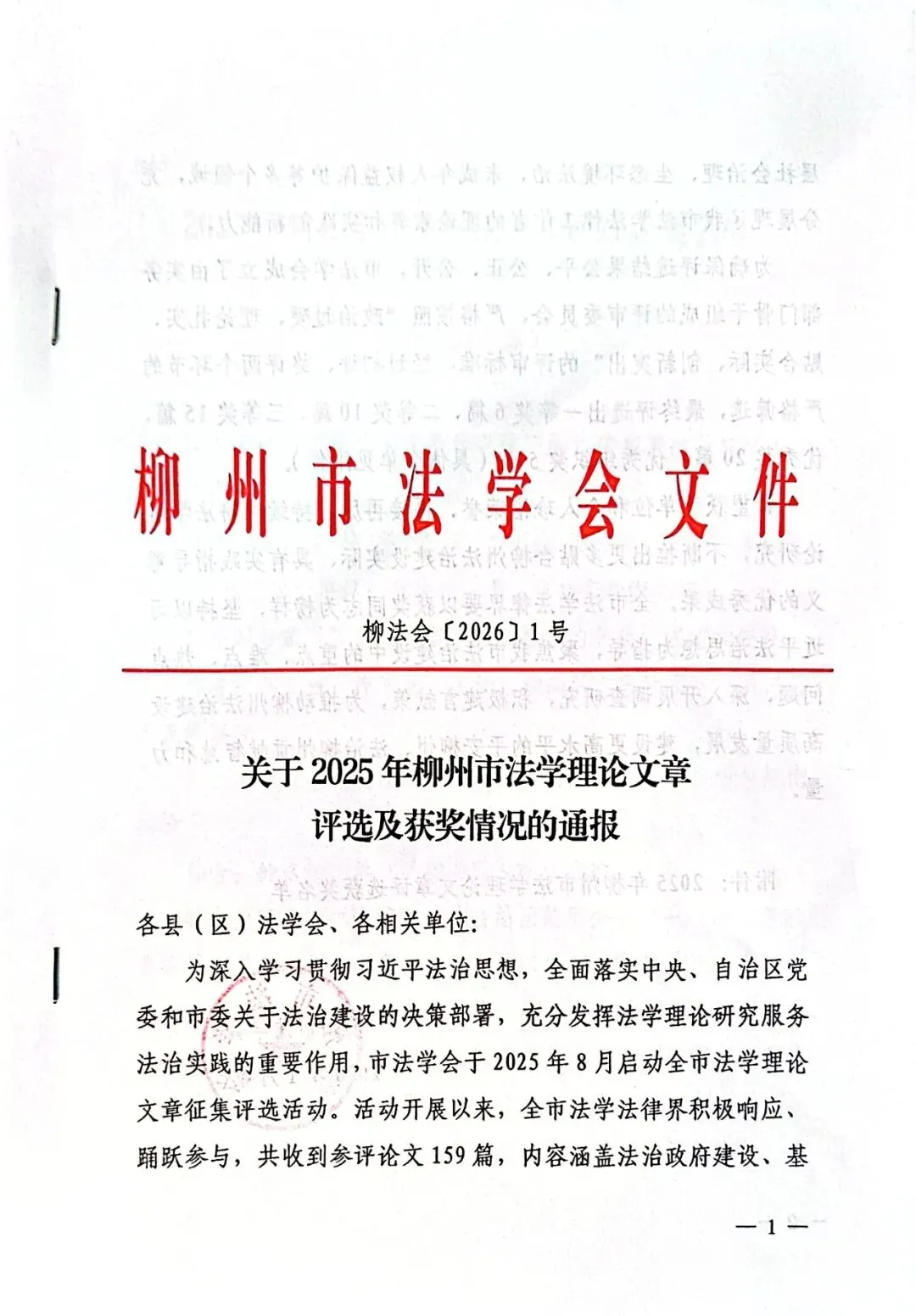祝贺!柳州评选出一批优秀法学理论文章(点击查看全文)