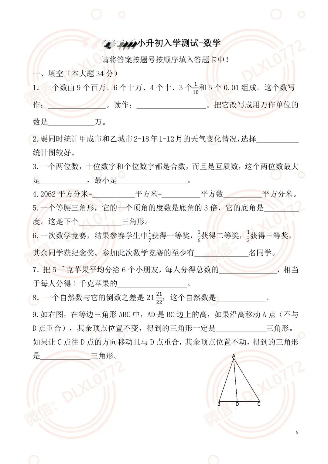 数学丨2026年柳州小升初选拔