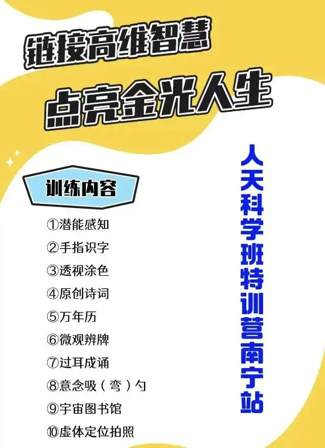 ‼️温馨提示:人天科学班属青少年潜能开发的试验班,潜能训练仍处在传统认知的边缘,学员的很多超能力常人思维难以理解。(认知不能同频者暂时不予接收)