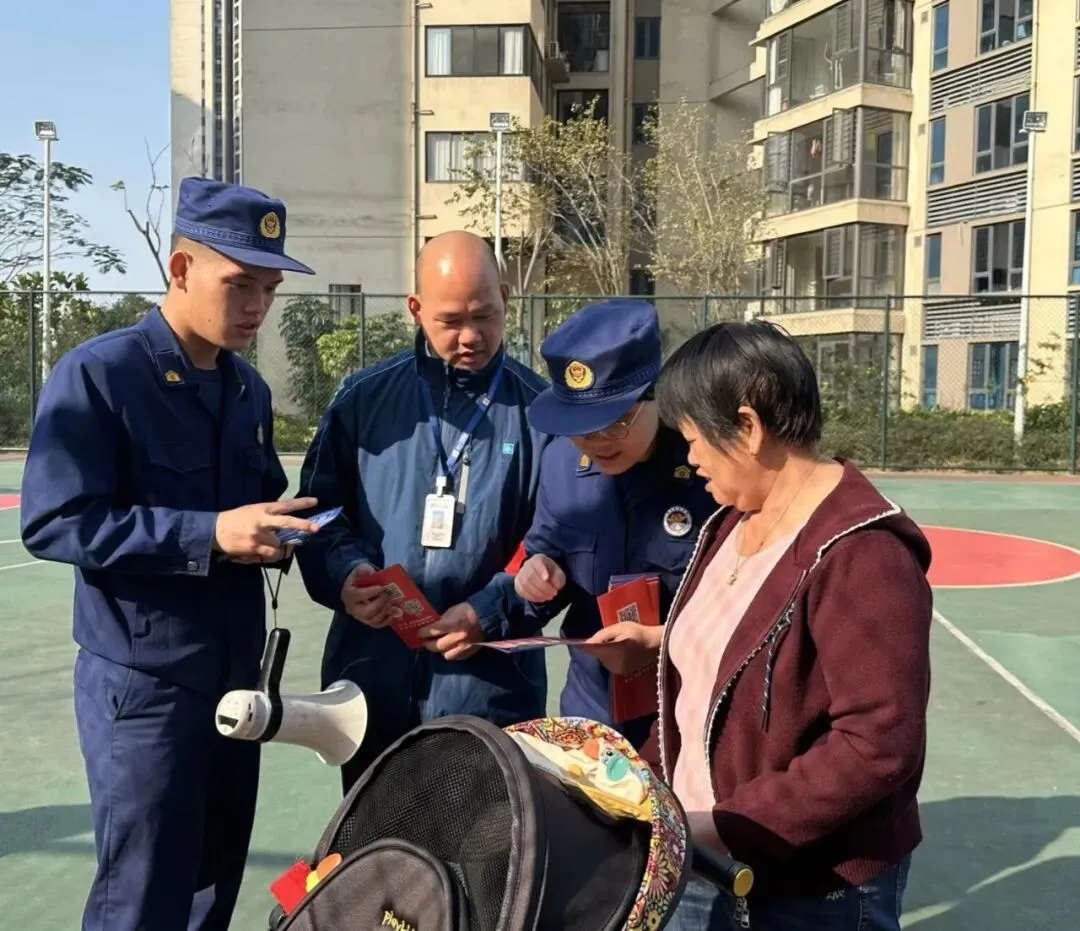 在碧桂园滨海城小区,楼栋长与消防宣讲员巡楼时,发现楼道堆满纸箱堵塞消防通道,立即上门耐心劝导业主:“这些杂物是火灾隐患,一旦起火,会堵住逃生路,请尽快清理。”同时,他还向业主宣讲电气防火、易燃物管理及逃生知识。