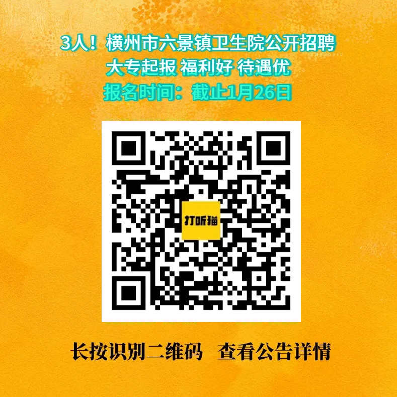 >【南宁招聘】3人!大专起报!横州市六景镇卫生院公开招聘!