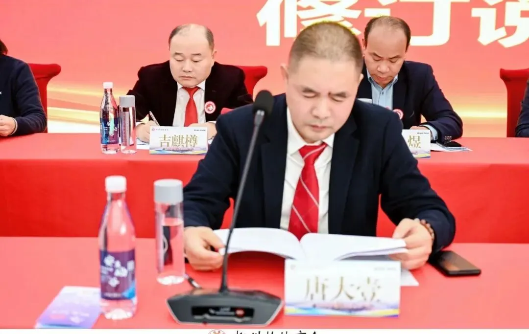 新当选会长蒋华在致辞中,首先向长期关心支持商会的各级领导、商会创会会长马明以及第一届理事会全体同仁,致以最诚挚的敬意和深深的谢意!他表示未来的工作将重点从以下四个方面着手:一是坚持党建引领,建设“五好”商会,主动融入柳州发展大局。二是传承商会精神,深化“五个助力”,实现共同成长。三是凝聚乡贤力量,壮大商会队伍,实现广泛覆盖。四是履行社会责任,树立商会良好形象,彰显桂商担当。