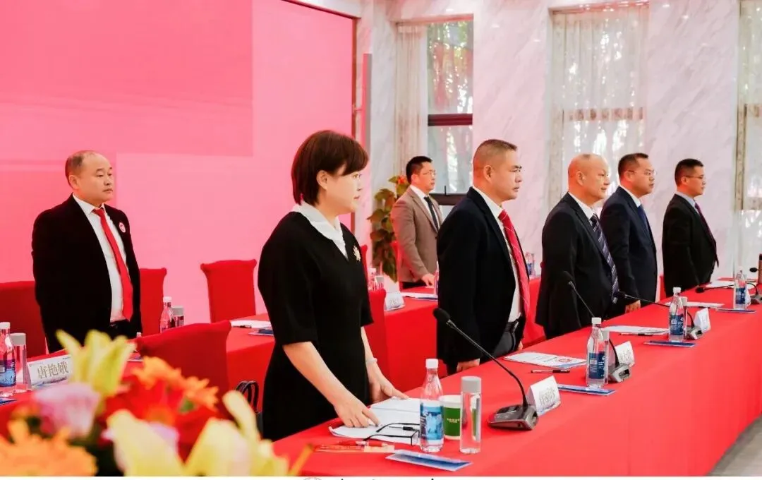 会上,还进行了会旗交接仪式,马明会长将会旗郑重交予刘洪生副主席,再由刘副主席转交给新任会长蒋华,这一交接不仅是责任的传递,更是初心的传承,象征着商会在新征程上续写辉煌的坚定决心。