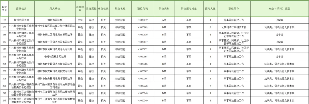 柳江区司法局土博司法所招录1名从事基层人民调解、社区矫正等司法行政工作;柳江区司法局里高司法所招录1名从事基层人民调解、社区矫正等司法行政工作