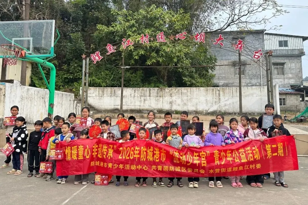 1月18日,“情暖童心 非遗传承”2026年防城港市“流动少年宫”青少年公益活动(第二期)在防城区鲤鱼江村党团队一体化教育微阵地顺利举行。本次活动由市青少年活动中心、团防城区委主办,防城区鲤鱼江村委承办,共吸引30名来自新就业群体家庭、留守儿童及困境儿童的代表参与。