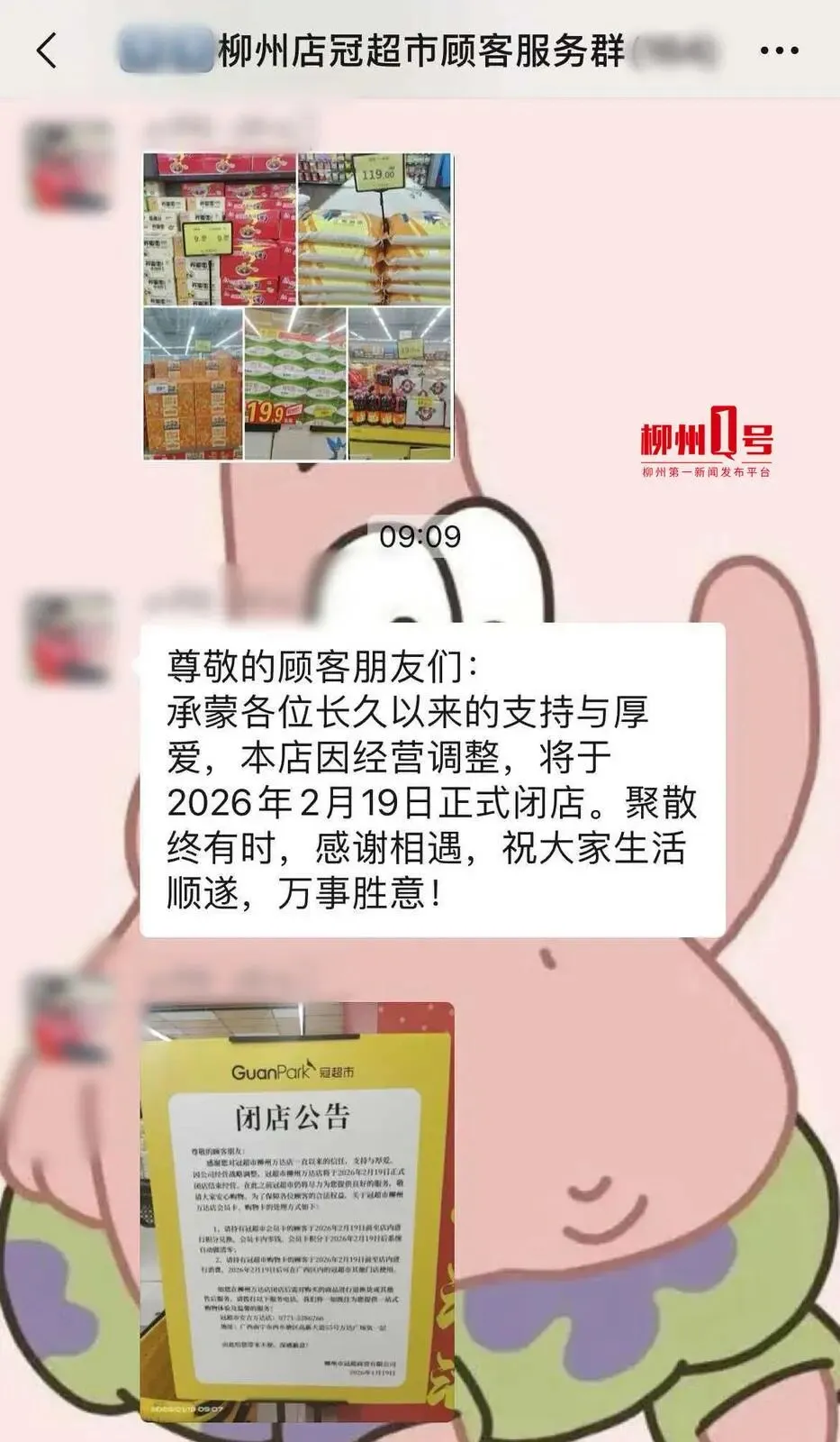 有网友在该超市相关服务群也收到工作人员发布的闭店公告信息。