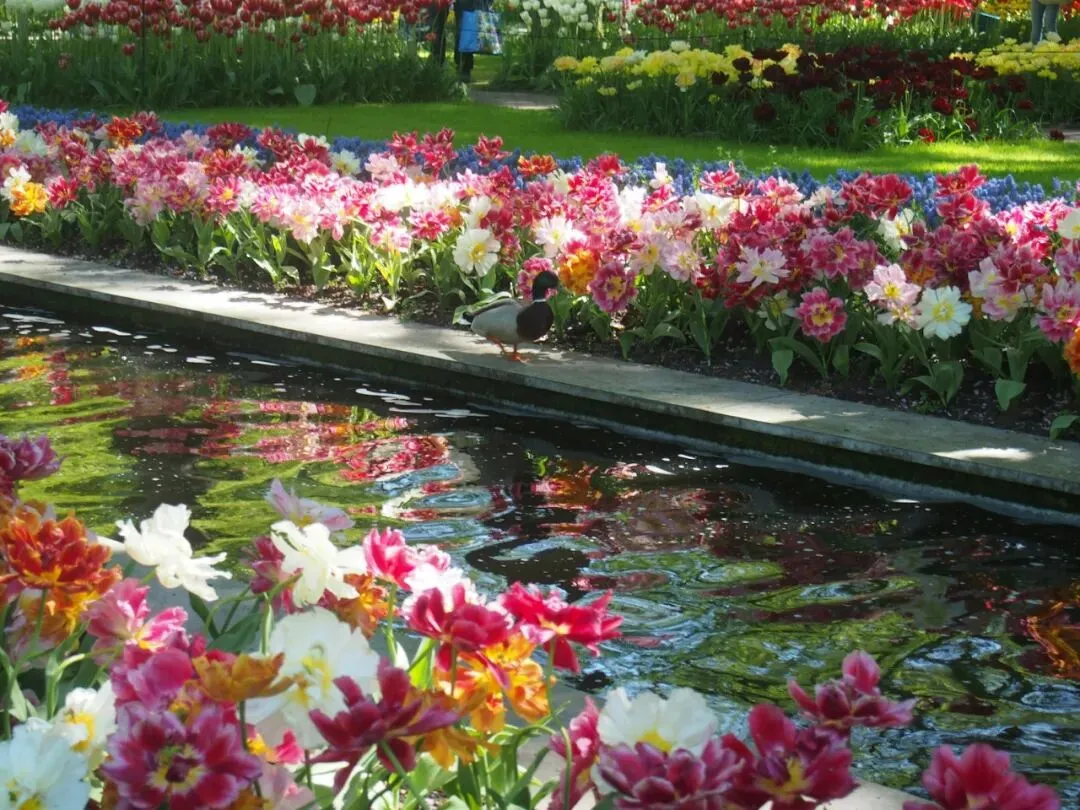 ●【博物馆广场】,位于有“博物馆之国”之称的阿姆斯特丹市中心,有众多博物馆分布在广场四周,是阿姆斯特丹的文化艺术圣地。红墙尖顶辉煌典雅的国家博物馆占据广场东侧,是整个广场上占地面积最大最惹眼的建筑。它的前面有个长方形水池,水面平静,鲜花怒放,还能看见蓝天白云的倒影。