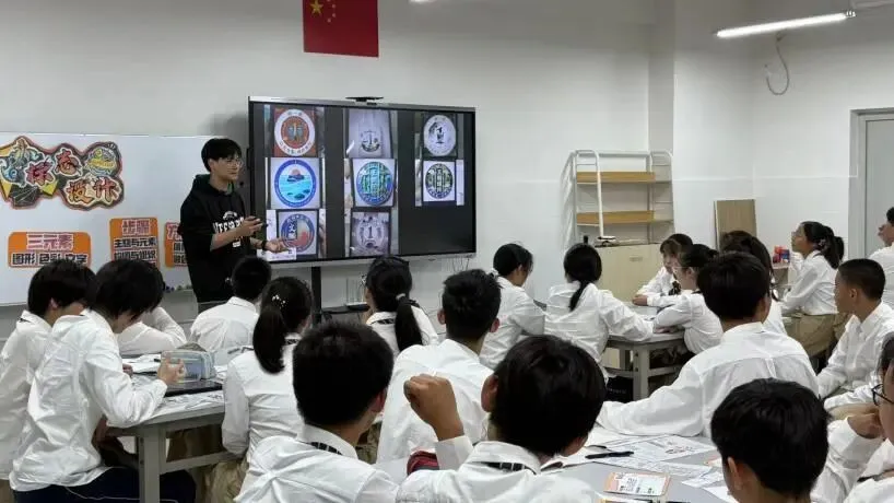 王海名老师《标志设计——AI班徽》课程,聚焦“AI赋能创意设计”。打破传统教学局限,以班徽设计为主题,讲解核心知识后引入平板AI文生图功能。学生将班级精神转化为文字指令生成设计雏形并优化,高效完成创意落地,降低表达门槛的同时提升设计思维,践行课题研究目标。