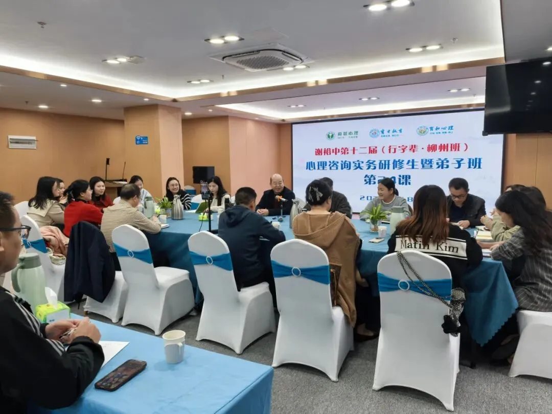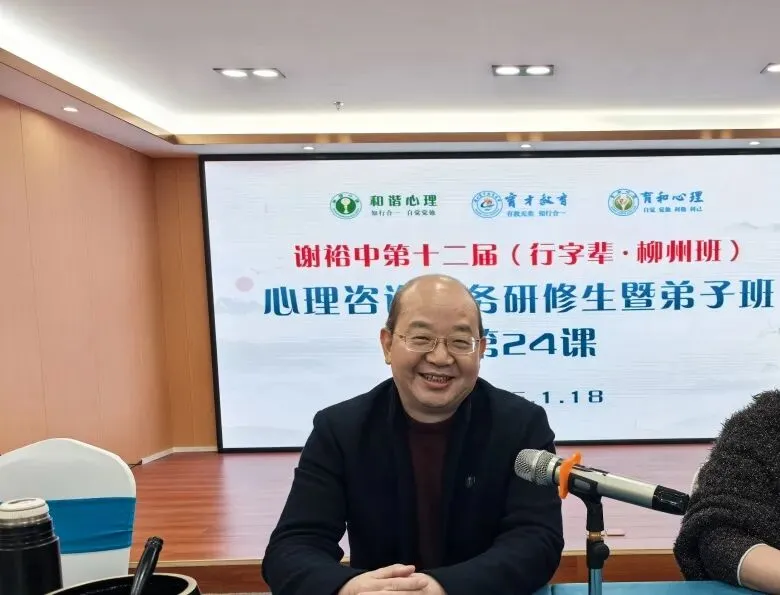 2026年1月18日,谢裕中第十二届(行字辈・柳州班)心理咨询实务研修班第三次双月总结顺利开展。和谐心理创始人、大校军衔的一线心理咨询实战专家、育和心理弟子班研修总督谢裕中师父与30余名弟子共同参与,经过半年的系统学习,弟子们已完成 24 课时的课程(共48个半天的线下集中研修)。此次双月总结旨在回顾总结前期学习成果,促进弟子间的交流与专业成长,为后续研修之路筑牢基础。