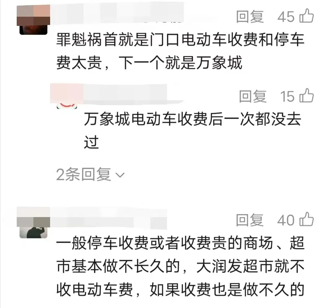 很多人会认为是超市东西贵品种不够多,或者租金贵等原因导致闭店,但其实只要深入了解就会发现,还有一个非常关键且重要的因素,那就是万达对电动车收费,且汽车的停车费贵。