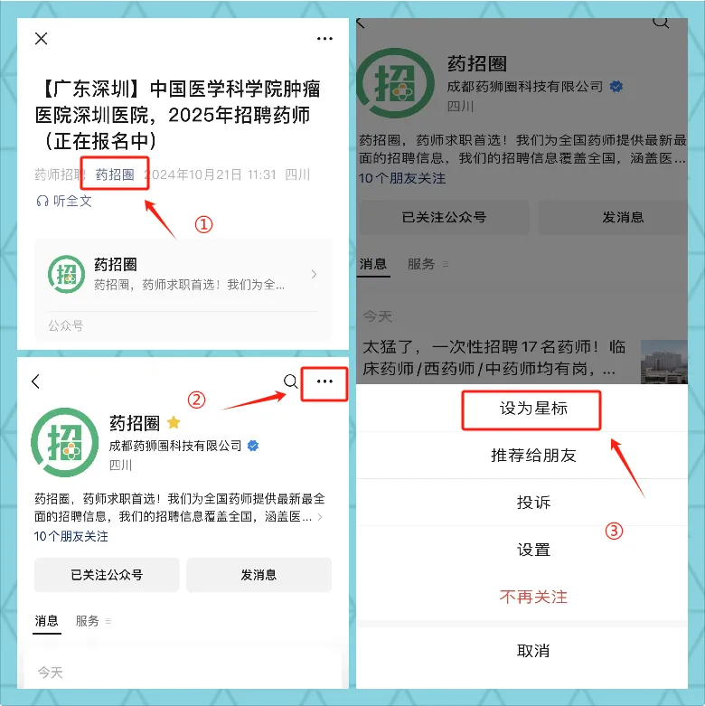 由于微信公众号改版,很多读者朋友反映,最近在订阅号列表里找不到我们了。为了防止和我们走散请给公众号“药招圈”设个星标吧!