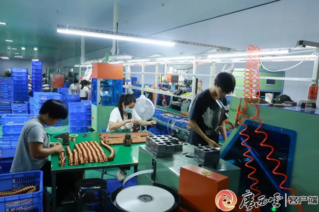 1月15日,在广西东兴产业园区,东兴市亿鑫电器制造有限公司崭新的厂房里,传送带匀速移动,两侧工人熟练地连接内部引线、安装接线盒……