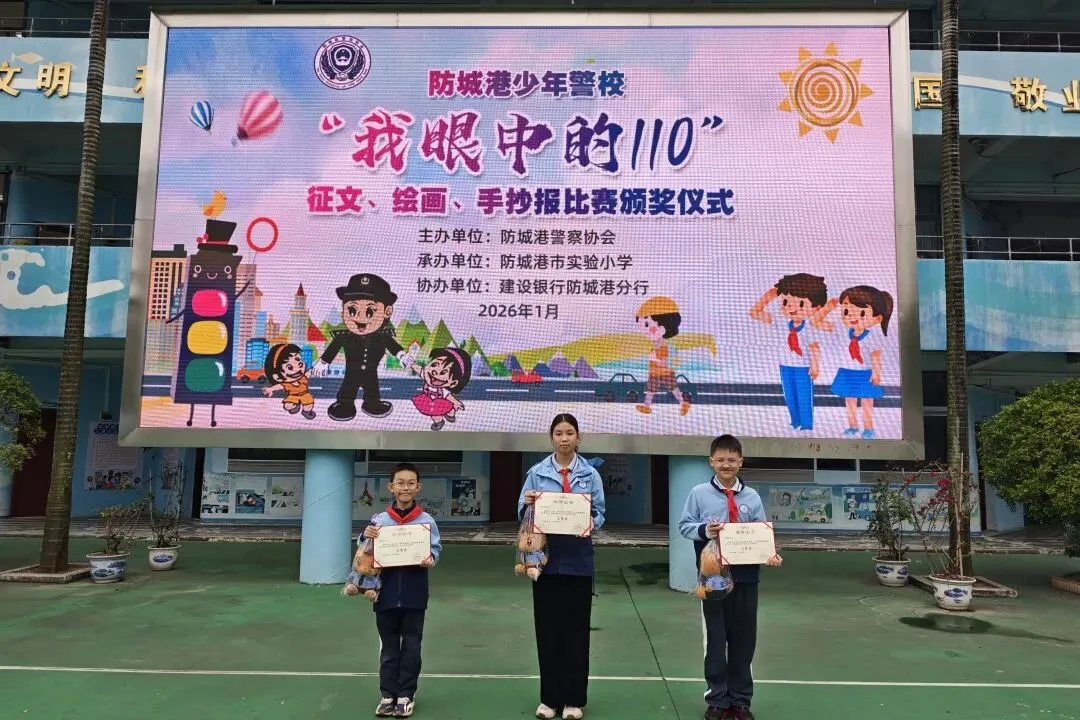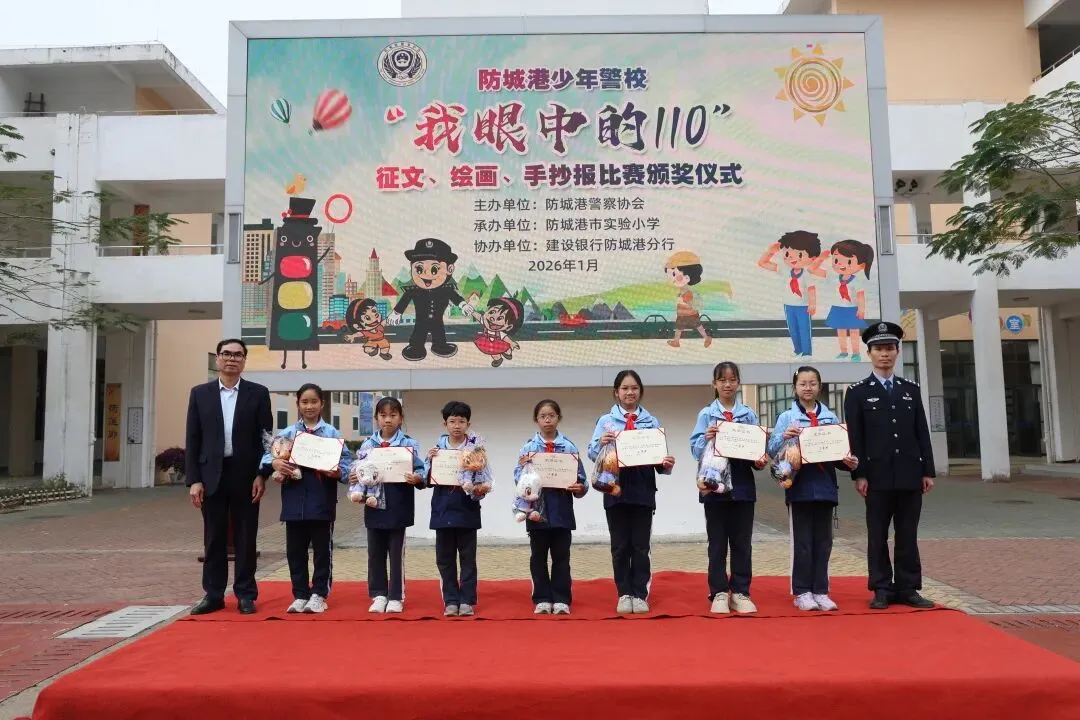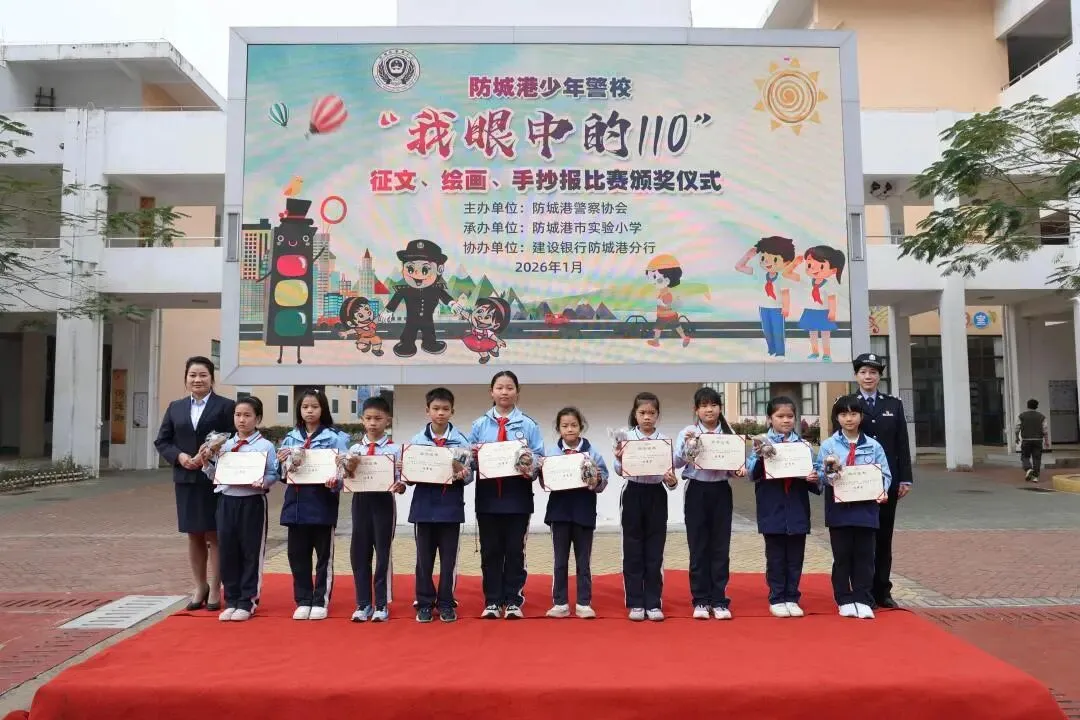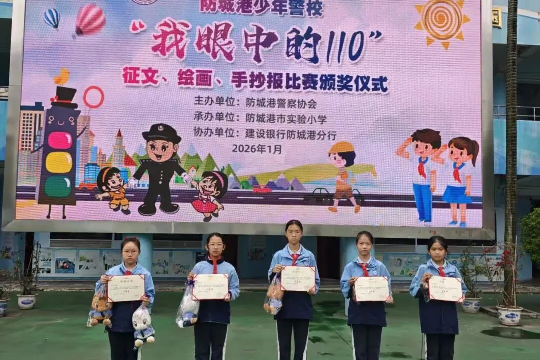 2026年1月10日是第六个中国人民警察节,也是全国110报警服务台成立40周年。1月16日上午,防城港警察协会走进防城港市实验小学,举办了一场以“警校携手护成长 110守护伴童行”为主题的现场活动,通过颁奖与授课相结合的形式,推动平安理念深入校园。