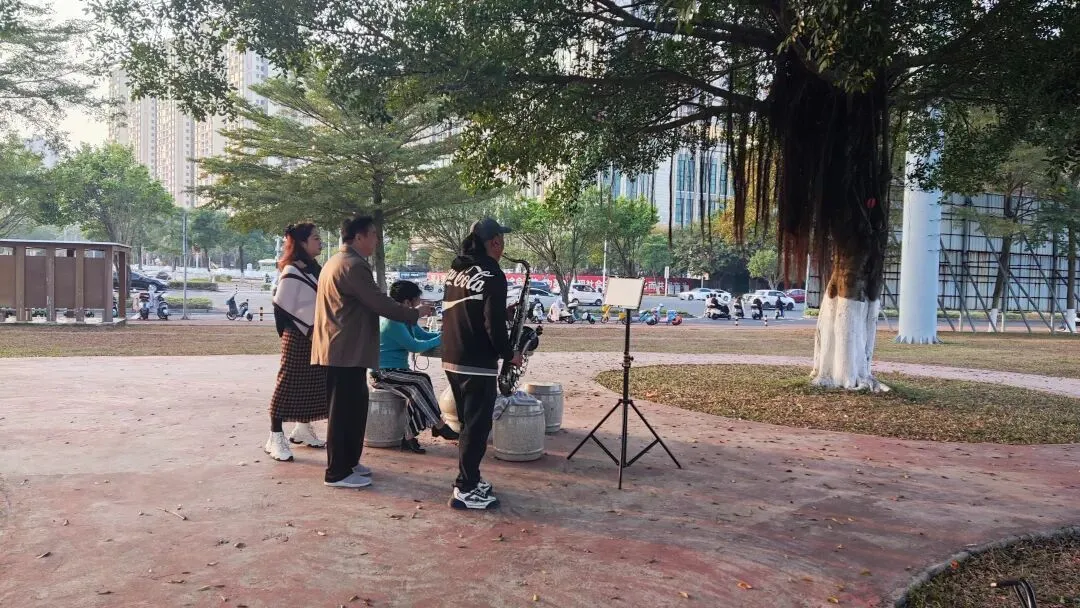 树荫下的“文艺角”更具韵味:几位老者围坐石桌,二胡、萨克斯的旋律悠扬响起,与自然声响交织成独特交响;书法爱好者以地为纸、以水为墨,挥毫泼墨间尽显从容;还有人铺开野餐垫,伴着芦苇清香分享美食,闲适与惬意在空气中弥漫。这些细碎日常,让湿地公园跳出“景观”范畴,成为承载市民喜怒哀乐的生活舞台。