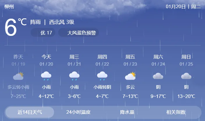 20日白天到晚上,全市阴天有小雨,北部高寒山区有冻雨、雨夹雪或道路结冰。北风3~4级、阵风6~7级;最低气温:高寒山区-4~0℃,其余地区0~4℃。最高气温:高寒山区0~2℃,3~9℃。