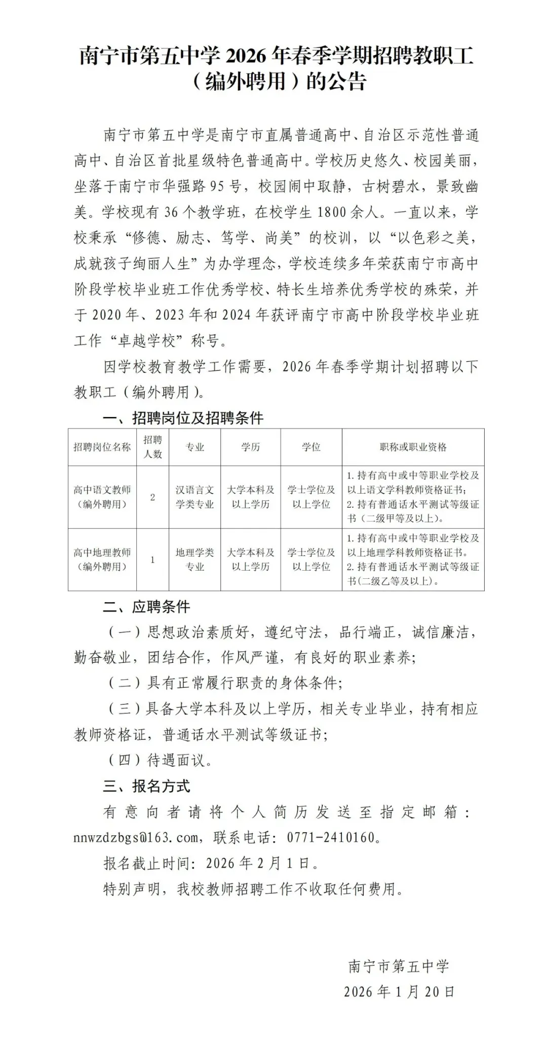 当前位置:首页>防城港>南宁市第五中学2026年春季学期招聘公告