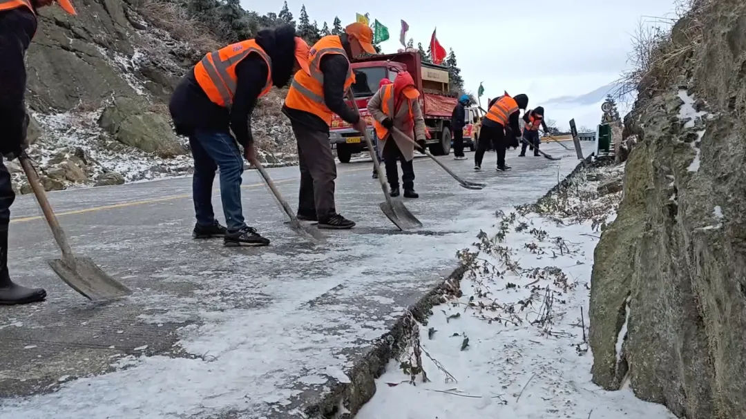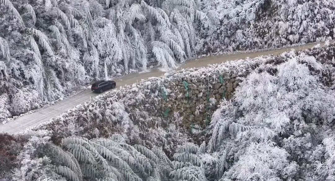 在资源县,大部地区最低气温已跌破0℃,局部区域出现雨夹雪、冰冻和道路结冰现象。20日下午,资源县隘门界高海拔路段的冰冻景象已十分明显:山间雾气弥漫,路面被一层薄冰覆盖。