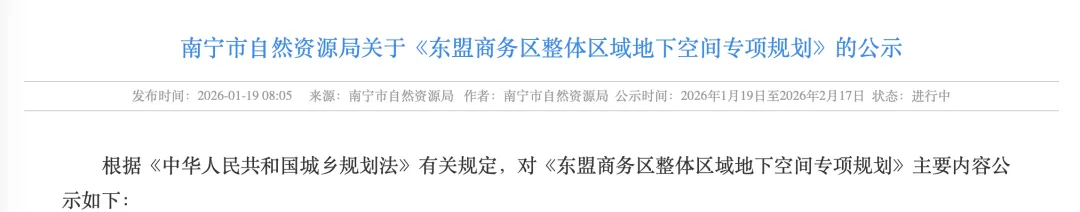 南宁市自然资源局日前发布《东盟商务区整体区域地下空间专项规划》的公示,释放极大信息量。
