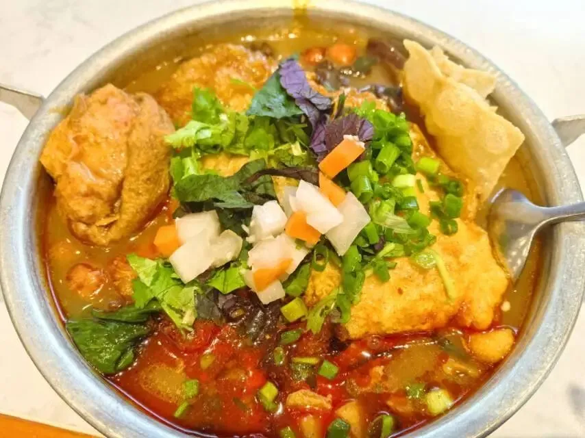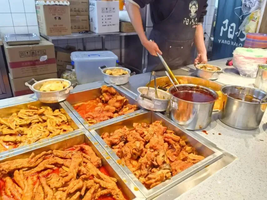 办好入住,顾不上放行李,就直接开车去觅食,还好3分钟就是一条小吃街,听说晩上比较热闹,看到一家窗明几净的嗦粉店,来广西了怎能不吃粉呢,立马路边停车进店。阳奶佬螺蛳粉,好特别的店名,果然很干净,符合我的选择,第一次吃螺蛳粉,也不知道怎么个点法,还好前面排了几个人,先学后买,为自己点了一大盆,光看着就很有食欲了,来吧,开吃!