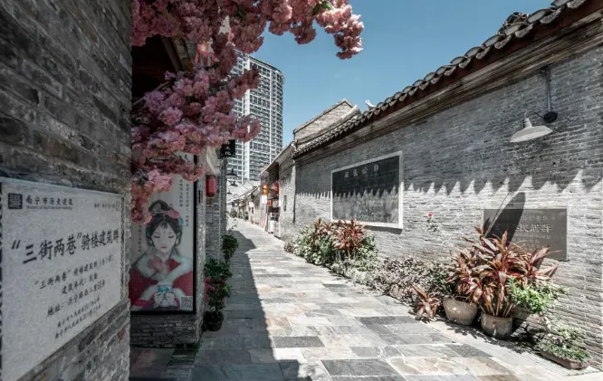 南宁市“三街两巷”古迹始建于宋代,为邕州商业的发祥地,是建设时间最长、历史文化资源最集中、最能体现南宁历史人文的街区,承载着南宁历史之源、文化之根,人文之魂。三街”指兴宁路、民生路和解放路三条街道,“两巷”指金狮巷和银狮巷,都保留了不少清末民初传统建筑,这附近挺多打卡点,“青砖黛瓦马头墙,回廊飞檐花格窗”,这里有老故事、旧记忆,还有老南宁的新生活。