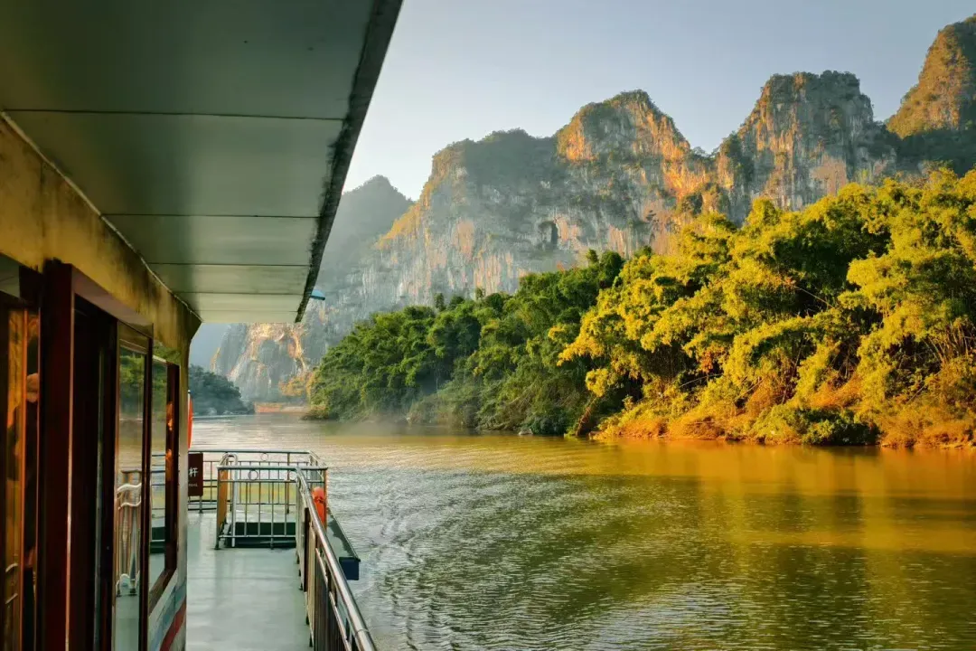 早餐后车赴并游览【峒那屿湾】:一个有点拗口的名字,“峒”指山水人家、“那”指良田沃土、“屿”说的是小岛星罗、“湾”则是河湾舟渡;乘船在碧波间荡漾,看峰峦叠嶂,仙气十足诗意浪漫。