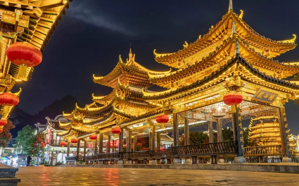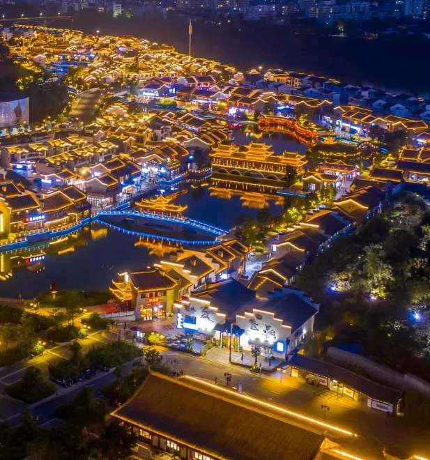 一个小众又出片的宝藏古镇,依龙潭河而建,小桥流水与青瓦白墙相映,被誉为“壮乡版清明上河图”,建筑融合壮族铜鼓、绣球、壮锦等元素,设有非遗展示馆、瓦氏夫人广场等。夜来人潮涌,升腾烟火气。在锦绣古镇,您可以充分体验壮族民俗文化内涵,享受桂西南“小昆明”的舒适气候,穿梭小桥流水、商帮古道之间,戏楼听曲、茶楼品茗、寻地道小吃、赏诗文砚语。
