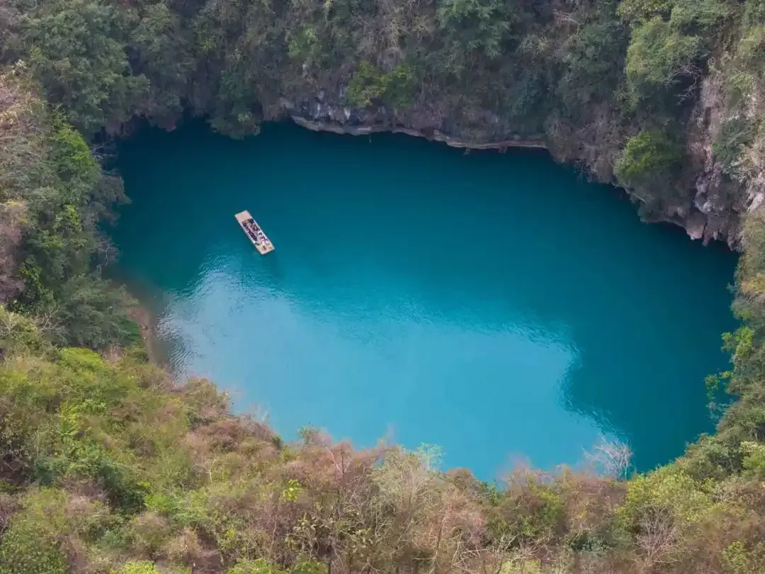 早餐后退房,随第一波人流前往抖音火爆热门景点【三门海】:由7个岩溶天窗,是串珠式天窗群,目前只有三个天窗由自然通道可乘船入内,加上蓝得像海的水使人感觉到山中有海、海上有门,“三门海”也因此而得名,这里是梦幻蓝色秘境。三门海天窗群奇观,串珠式塌陷,兴山、水、洞、天浑然一体,时属世界罕见,独一无二”,三门海亦因此被国内外专家学者称为“世界之窗”。