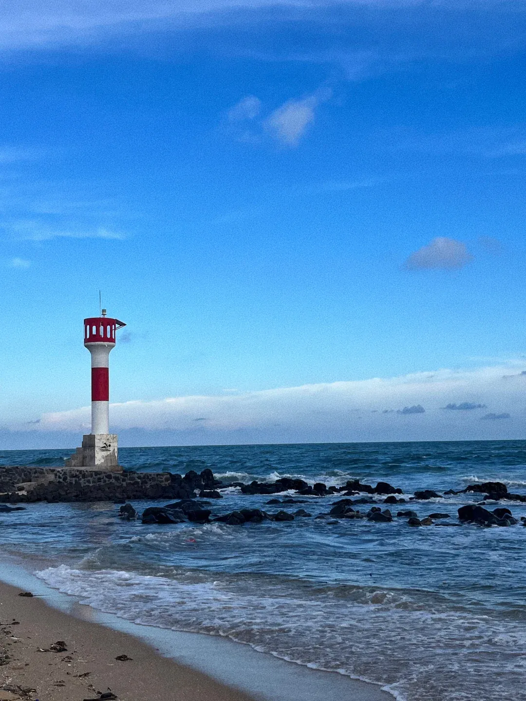 日出就去白龙尾,天边一道线,灯塔配人影,随手一拍就像海报。