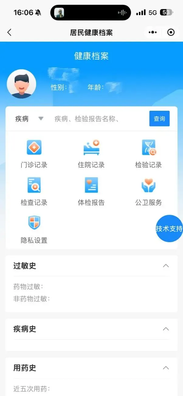 信息纠偏:若发现档案内的就诊记录信息有误,可点击档案页面内的“技术支持”图标反馈。工程师将尽快为您核查处理(在线时间为周一至周日9:00-18:00)。