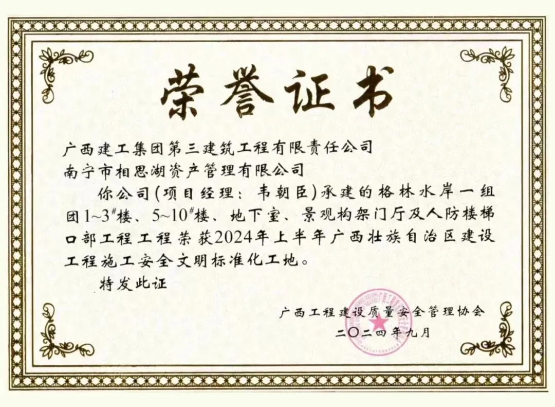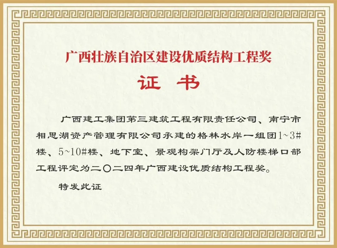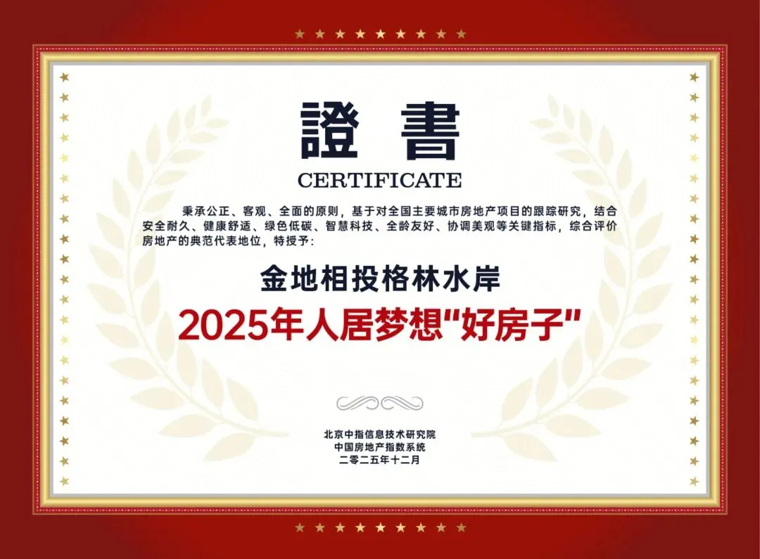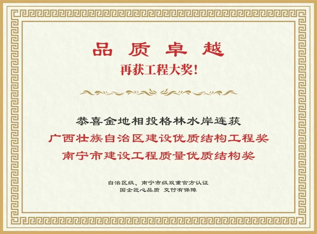5大荣誉背书是项目实力最直接体现。格林水岸荣登中指研究院“2025人居梦想好房子”榜单,成为广西唯一获奖项目,此前更是荣获自治区/南宁市“优质工程结构奖”、自治区/南宁市“文明工地”等多项大奖。