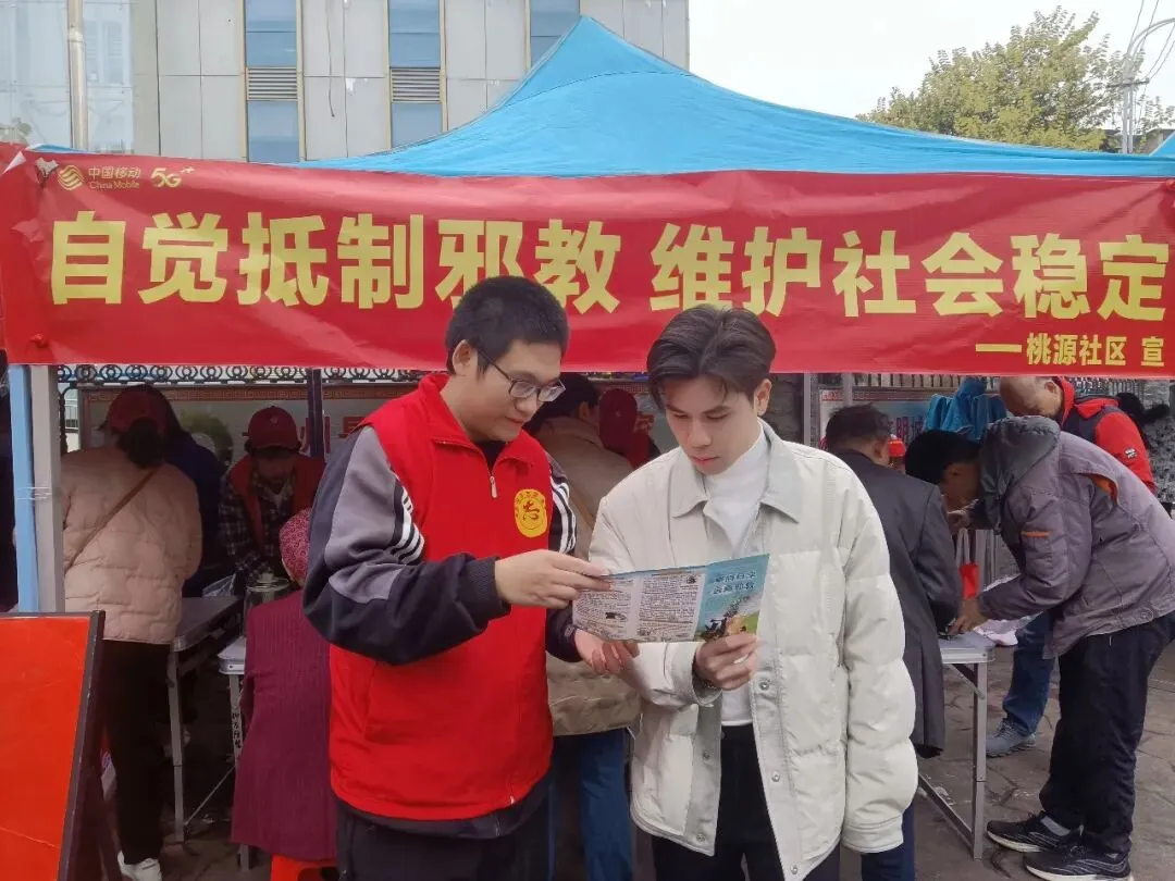 为提升居民识邪、防邪、拒邪的意识与能力,维护社区和谐稳定,近日,柳州市鱼峰区桃源社区开展了“自觉抵制邪教,维护社会稳定”主题宣传活动。
