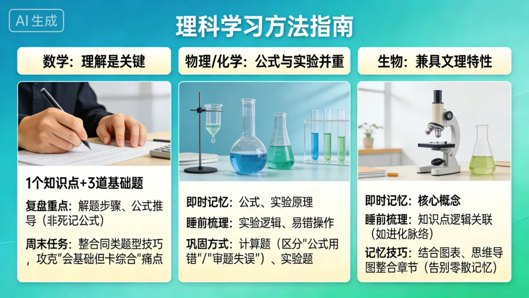 道法:抓“观点+关键词”。即时记核心,睡前通读划重点。复习时重在理解逻辑,周末总结答题框架,学会用观点分析材料。