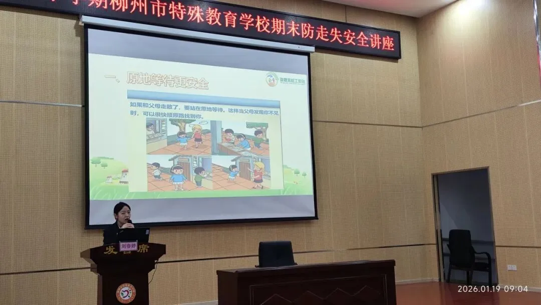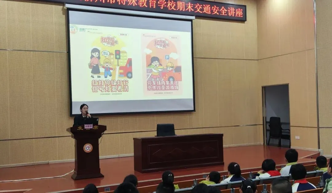 此次讲座由政教处周正兴副主任主持开展,培智部低、中年级以及盲聋部全体学生一起参加了这场围绕着交通安全、防火放电、预防走散走失开展的安全教育主题讲座。
