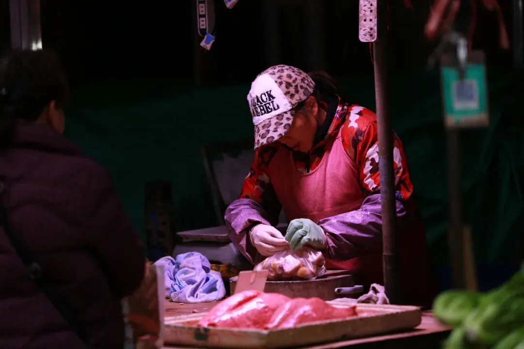 但柳州人的御寒,从来不是被动裹紧衣衫,而是主动奔赴早市的烟火。天刚破晓,青云民生市场的暖黄灯光已亮起,湿漉漉的青石板映着红底白字招牌,摊主呵着白气摆好带露的青菜、现宰的土猪,吆喝声穿透寒风:“妹崽,买点羊排炖萝卜,驱寒得很!”