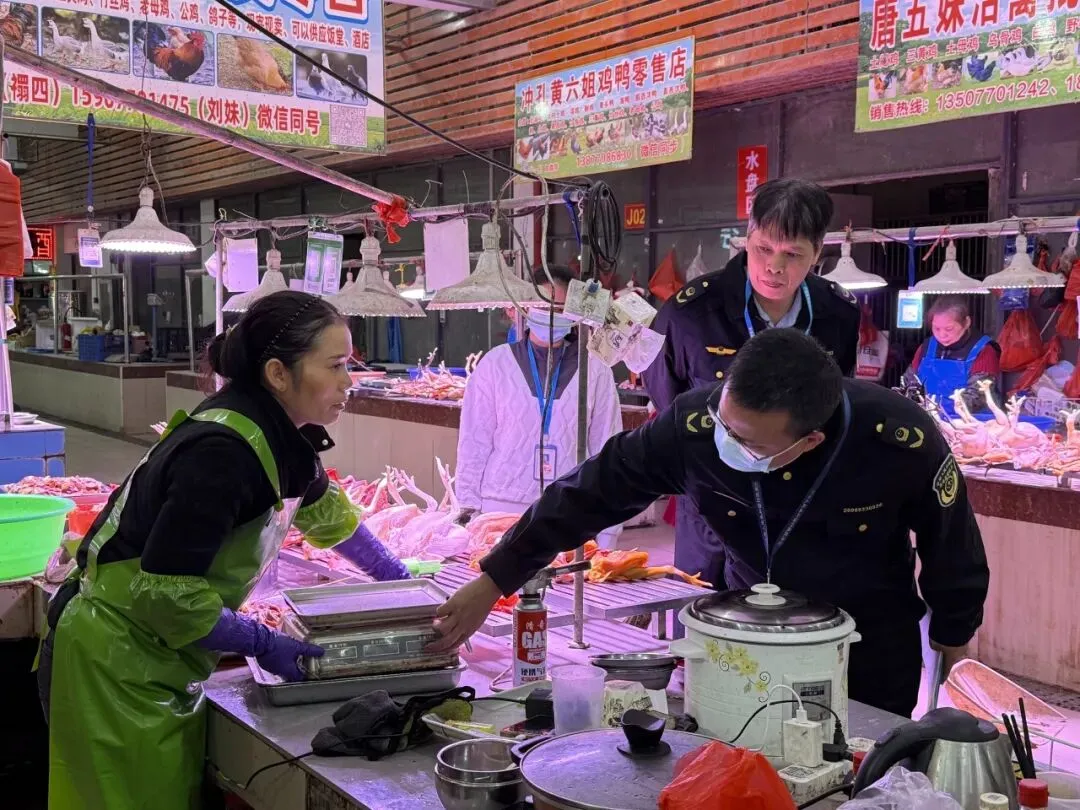 自创城工作启动以来,该局迅速部署落实,针对城区14个农贸市场创新推行“责任领导+直接负责人”双重责任机制,实现监管无死角、责任全覆盖,督导农贸市场建立“早巡查、午督导、晚复盘”工作制度。截至1月19日,已累计检查城区市场31家次,执法人员严格对照“十无一有”标准,精准整治杂物乱堆乱放、垃圾乱扔、消防通道堵塞、小广告乱贴等突出问题。同时,强化计量器具监管,打造“称”心市场,让群众的“菜篮子”拎得放心、拎出幸福感;主动对接上级部门与区创城办,精准破解市场开办方经营管理中的急难愁盼问题,切实做到监管有力度、服务有温度。