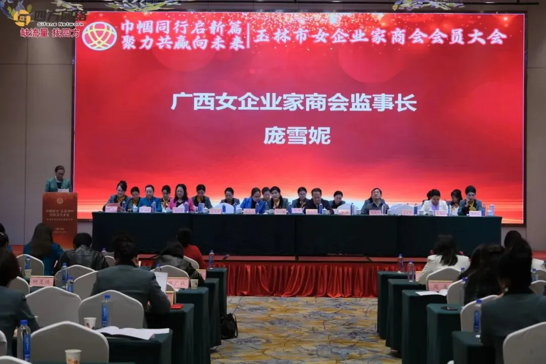 下午的工作总结大会上,广西女企业家商会监事长庞雪妮,玉林市统战部副部长、玉林市工商联党组书记杨健上台致辞,,玉林市女企业家商会刘小花会长作工作报告,覃诗诗监事长作财务报告。
