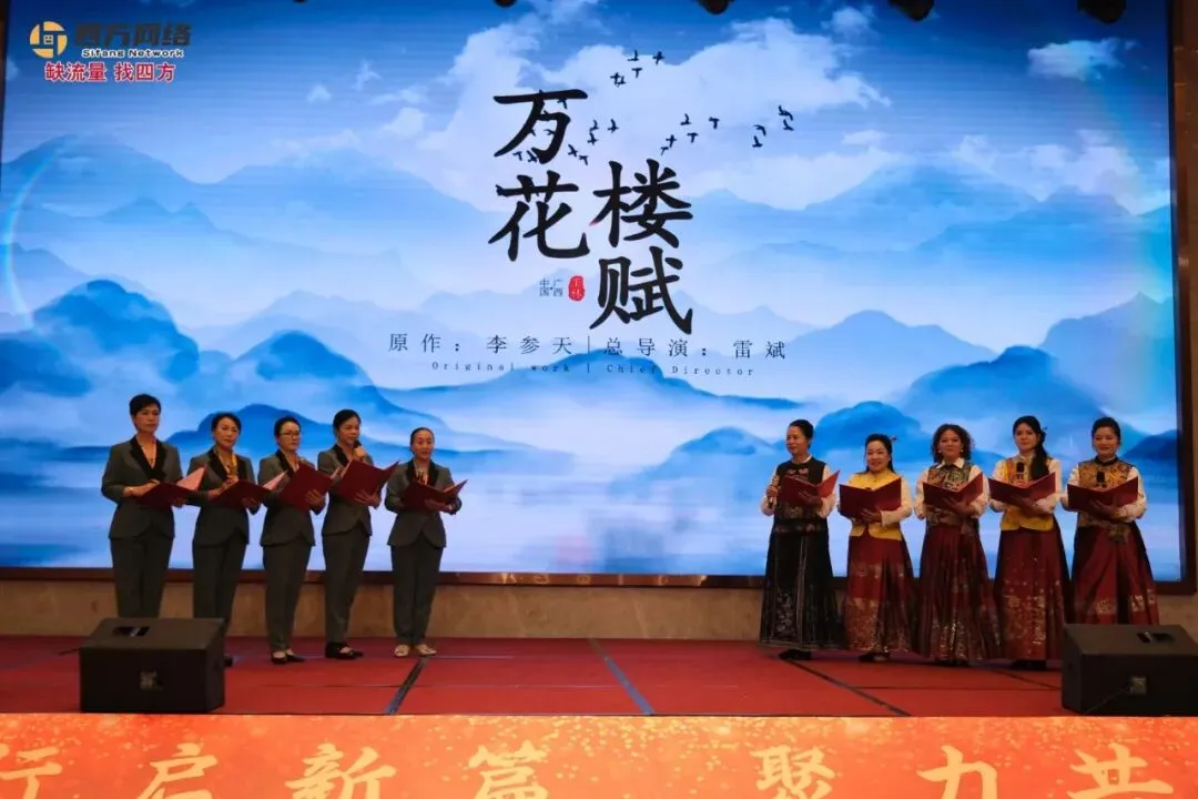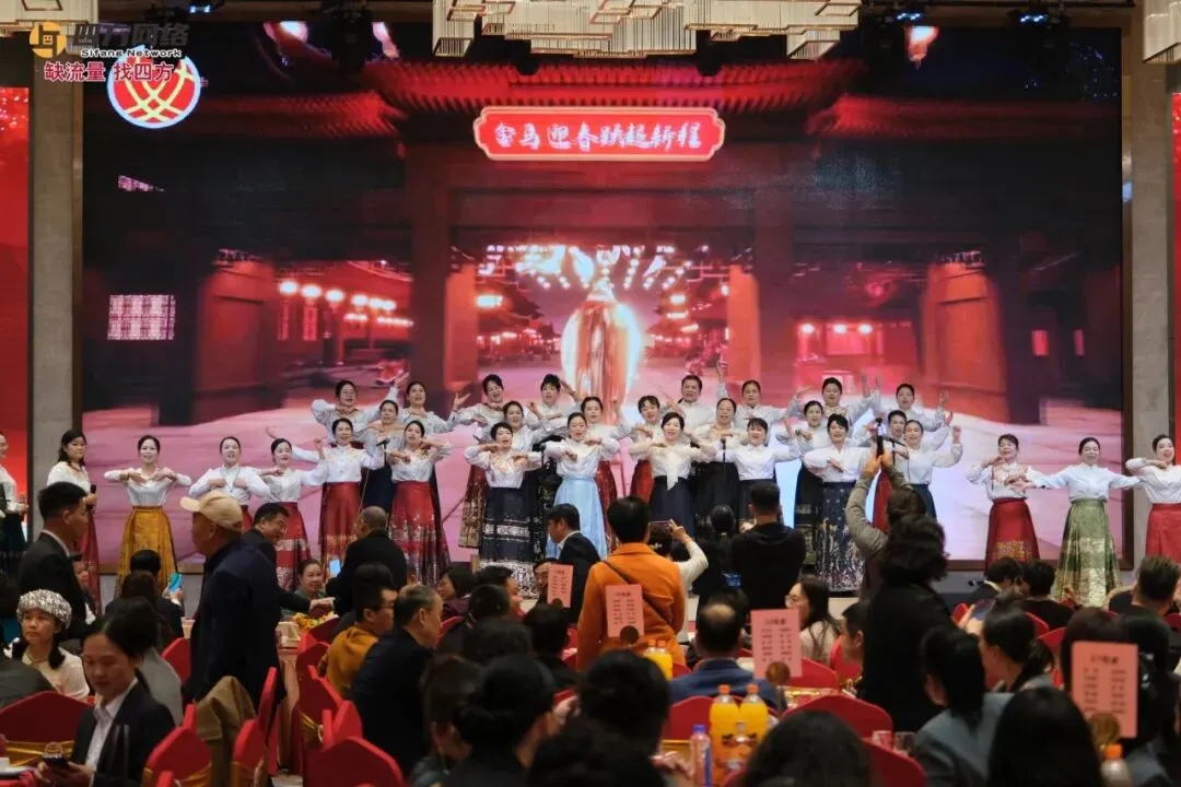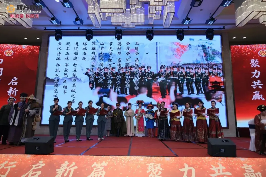 夜幕降临,“巾帼助力玉商回归创新篇晚会”温情启幕。合唱《相亲相爱》拉开了晚会的序幕,玉林市政协副主席、市工商联主席曾峰和玉林市女企业家商会商会会长刘小花上台致辞振奋人心。