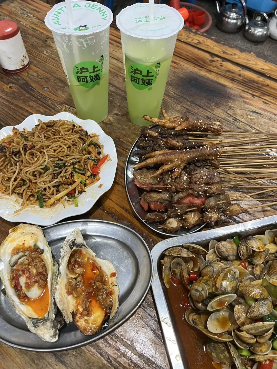 下了高铁直奔胜利烧烤城,感受一下柳州夜市的魅力🤩。真的很多人哈哈哈哈。来了柳州是绝对离不开螺蛳粉的,于是第一顿就点了烤串和炒螺蛳粉,一口惊艳!这就是正正经经的柳州螺蛳粉!还有裹了果酱的烤牛肉串,毫不夸张,真的好吃,离开柳州后再也没吃到这么好吃的果酱牛肉串了😭