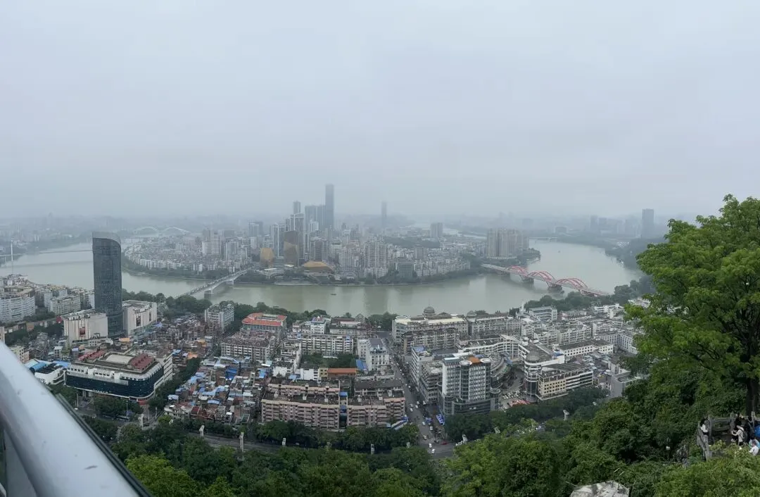 最后还去了马鞍山公园,买了两张竖井电梯票直达山顶🏔️,在山顶俯瞰柳州全景的感觉真的很不一样。但是步行下山的时候走得膝盖痛,全是楼梯,下山的时候走得一噔一噔的是真的感觉膝盖要废了😭。