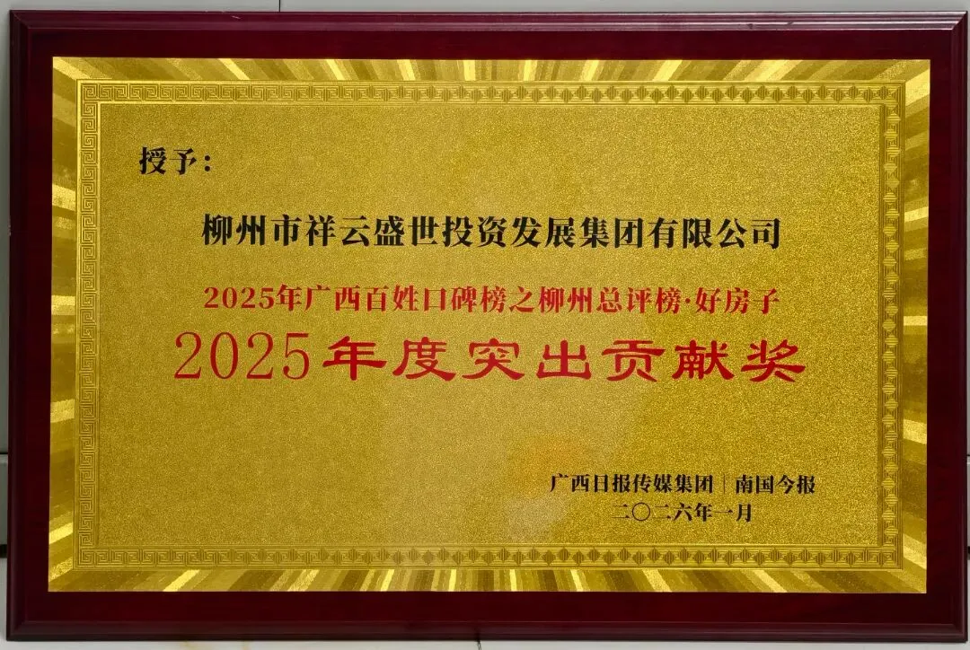 柳州市祥云盛世投资发展集团有限公司凭借其卓越的综合实力与行业标杆表现,一举拿下“2025年度突出贡献奖”,成为地产好房子企业奖项实力担纲。