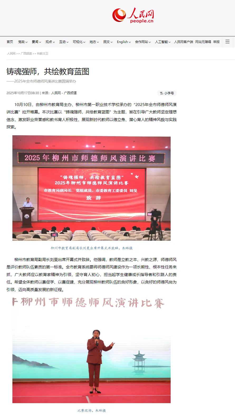 顶层设计“共发展”、资源配置“共分享”、教师队伍“共培育”、教学研究“共推进”、育人内涵“共养成”,柳州市以一场“教育共同体”改革破题,通过持续“输血”与高效“造血”双轮驱动,走出一条县中提质振兴的创新之路。10月14日,在甘肃兰州召开的全国县域普通高中振兴现场推进会上,柳州市作经验交流发言。