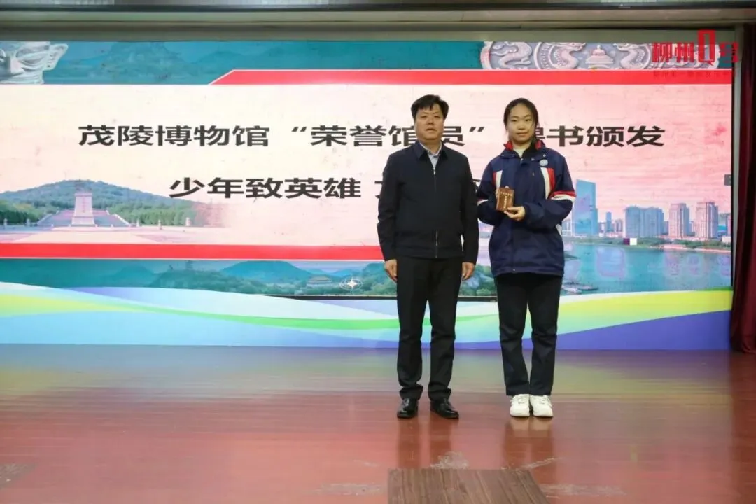 袁同学的这封信来自柳江河畔,飞越关山,落到祁连山下,掷起涟漪。念念不忘,必有回响,时隔5个月,两地因两人有了更深的联结——陕西兴平市代表团到访,并为袁同学颁发茂陵博物馆“荣誉馆员”聘书。