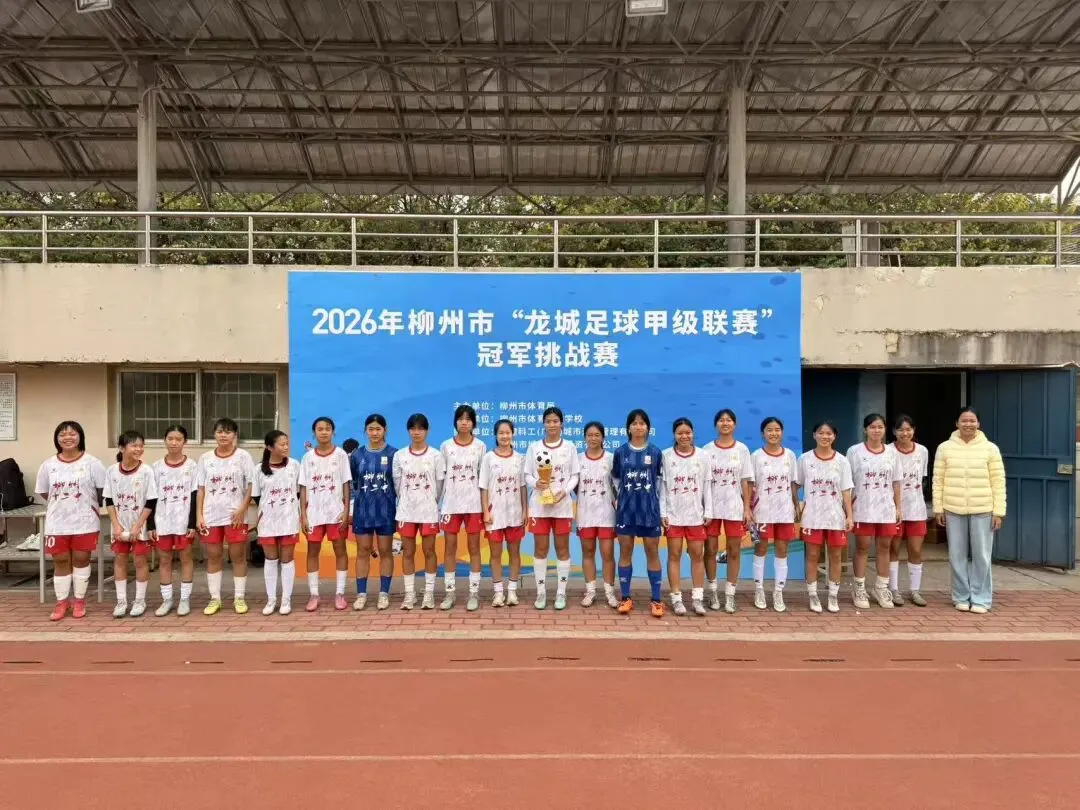 近日,2026年柳州市“龙城足球甲级联赛”冠军挑战赛顺利落下帷幕。我校女足队员在绿茵场上奋勇拼搏,凭借坚韧不拔的斗志与默契流畅的团队配合,一路过关斩将、势不可挡,最终成功摘得桂冠,为学校再添一项沉甸甸的荣誉。