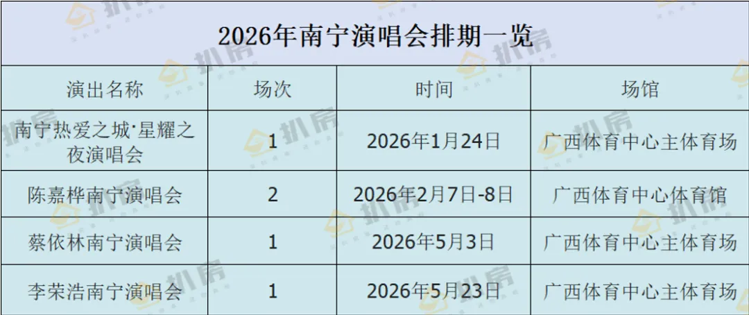 2026年刚开年,南宁的演唱会排期表上便已排到了5月,今年将在南宁举办的演唱会,仍在陆续官宣。