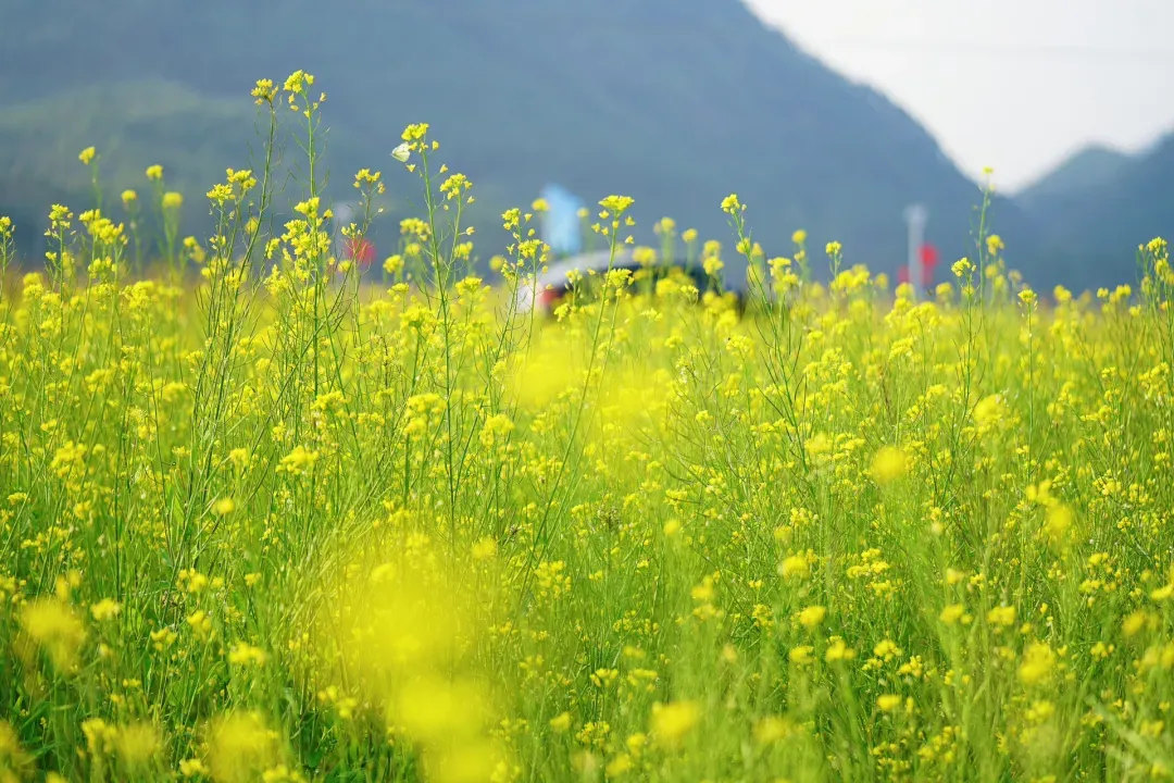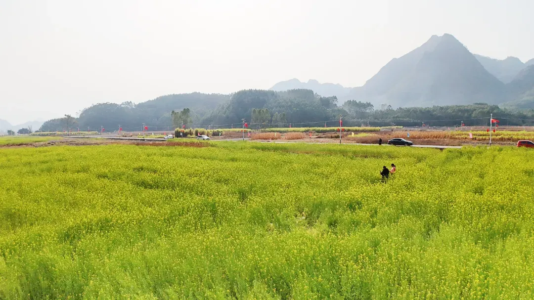 不用远赴云南罗平,也不用扎堆江西婺源,在南宁周边就藏着一片震撼人心的油菜花海!最近,在南宁上林县的香马庄,发现这片足足500多亩的金色秘境!南宁出发1小时直达,仿佛闯入了大自然打翻的调色盘,随手一拍都是刷爆朋友圈的春日大片!500 多亩油菜花田顺着地势连绵起伏,没有刻意规划的边界,却自然形成了一片无边无际的金色海洋。阳光洒在花瓣上,波光粼粼,闪烁着迷人的光芒,把整个村庄都装扮得如梦如幻。不同于城市公园的精致盆栽,这里的油菜花是肆意生长的、是充满野趣的。一株株挺拔向上,密密麻麻地铺满了田间地头,那种铺天盖地的壮观,只有亲身抵达才能真切感受。走进花海深处,更是让人沉醉不已,每一朵油菜花都像是大自然精心雕琢的艺术品。游客们三三两两散布在花田里,有的举着相机定格美景,有的牵着孩子追逐蝴蝶。