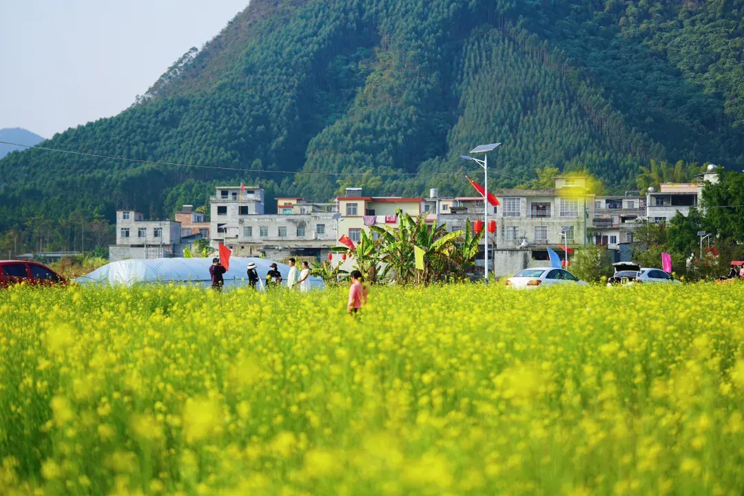 还有的坐在田埂上静静欣赏,欢声笑语在花海中回荡,为这片静谧的田园增添了无限生机与活力。这里没有商业化的喧嚣,只有最纯粹的自然之美和乡村之趣。你可以在花田里肆意奔跑,约上三五好友,带上野餐垫和零食,在花田边席地而坐,聊聊家常,享受悠闲的春日时光。如果喜欢安静,不妨沿着乡间小路散步,看看田间劳作的村民,听听他们淳朴的乡音,感受最真实的田园生活。不妨趁着周末,约上你最想同行的人,奔赴这场与春天的约会,让金色的油菜花和古朴的乡村风情,成为这个季节最难忘的回忆~