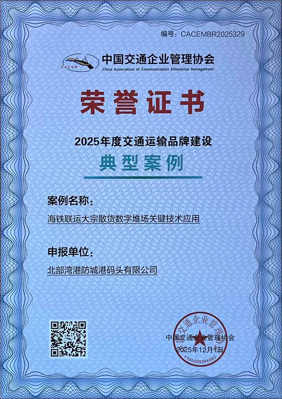 北部湾港品牌建设成果丨防城港码头项目获评2025年度交通运输品牌建设典型案例